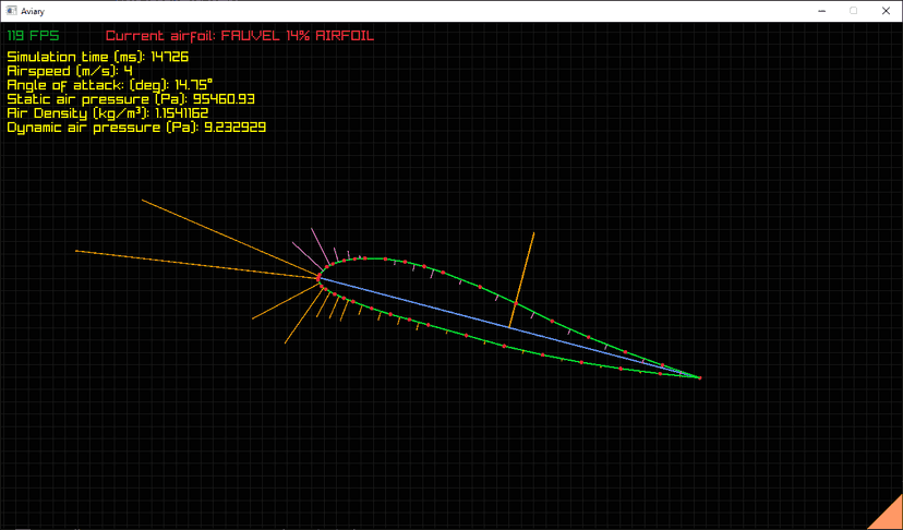 For the past few months, I've been working on this. It's called Aviary, and it's a C# app that simulates different airfoils based on a standard file format. Currently the airfoils are hardcoded into the compiled program, but this is for internal use so I don't really care. You can take a look at the source code here: github.com/aaronw-dev/Aviary